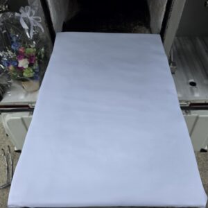 ①ご遺体を乗せるマットですが、火葬に影響がない生地にて布張りしております。
